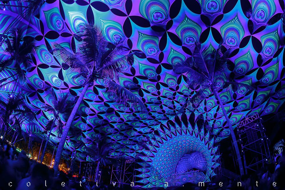 The responsible for opening the main stage was the Mexican Shove! He did very well, pleasing the audience on this stage, which highlighted the Psychedelic Trance. There the meditation field takes place, the magic, in its greatest intensity. The decoration of the psychedelic peacock was made by Artescape from South Africa.